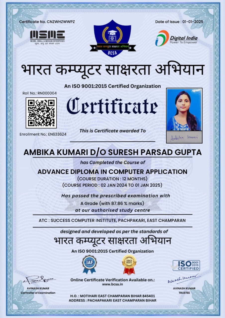 ADCA CERTIFICATE