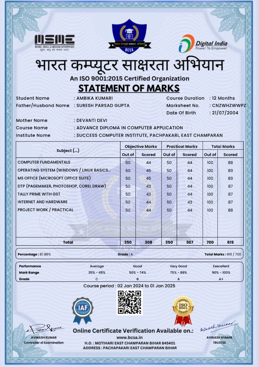 ADCA MARKSHEET